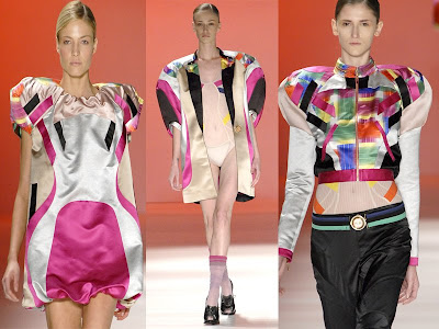 Peças amplas mas com uma pegada sexy apareceram em tons terrosos (verde escuro, tijolo e terra) e em cores energéticas (laranja, verde aberto) confesso q ñ sou mt fã dessas cores e que a coleção tb naum me convenceu mutio…
