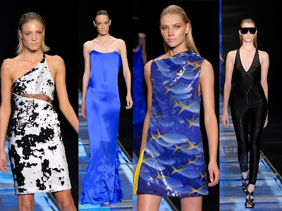 mt preto e branco e uma mistura de futurismo e anos 80, uma modelagem bem reta, diferente dos outros q havia mostradO( cintura marcada),bastante azul royal q parece ser uma cor q vem com td nesse verão….eu ameeeeeeiii td….