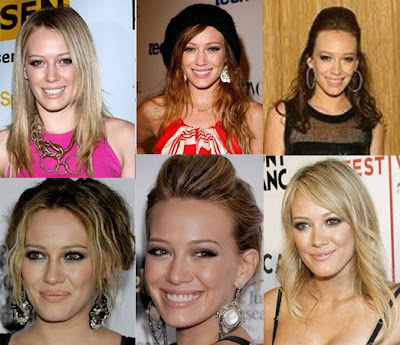 Hil era loira, fikou morena,e agora voltou a ser loira o cabelo qse sempre no mesmo comprimento, nunca muito curto, hil está qse sempre com esse topetinho ( q eu amo e acho super digno), ela usa de dia com a parte de traz mais bagunçadinha, e a noite beeemmm armado e arrumadinho pra fika mais chiqueee….