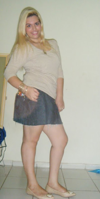 Ontem estava um calor absurdo aqui, então fui de mini-jeans, scarpin baixinho e outra queridinha uma blusa nude de ombros marcados ( igual a cinza).