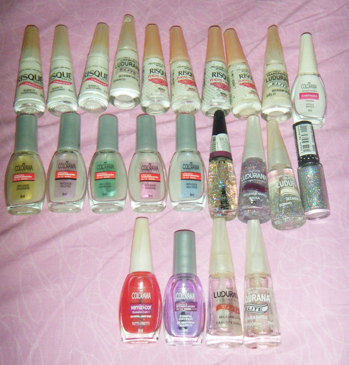 Sempre gostei de esmaltes, mas até uns 2 anos atrás tinha bem poucos, já que sempre preferia usar os da manicure, quando criei o blog e decidir colocar a tag esmalte da semana, foi surgindo uma nova paixão, e dai em diante ir na farmácia deixou de ser para comprar remédio e até hoje é assim não posso ver a prateleira de esmaltes que corro pra conferir as novidades, infelizmente na cidade onde moro ( nas cidades neh?!) são poucas as opções, encontro sempre os basicões, e as novas coleções demoram muito a chegar, o que é bem chato!!