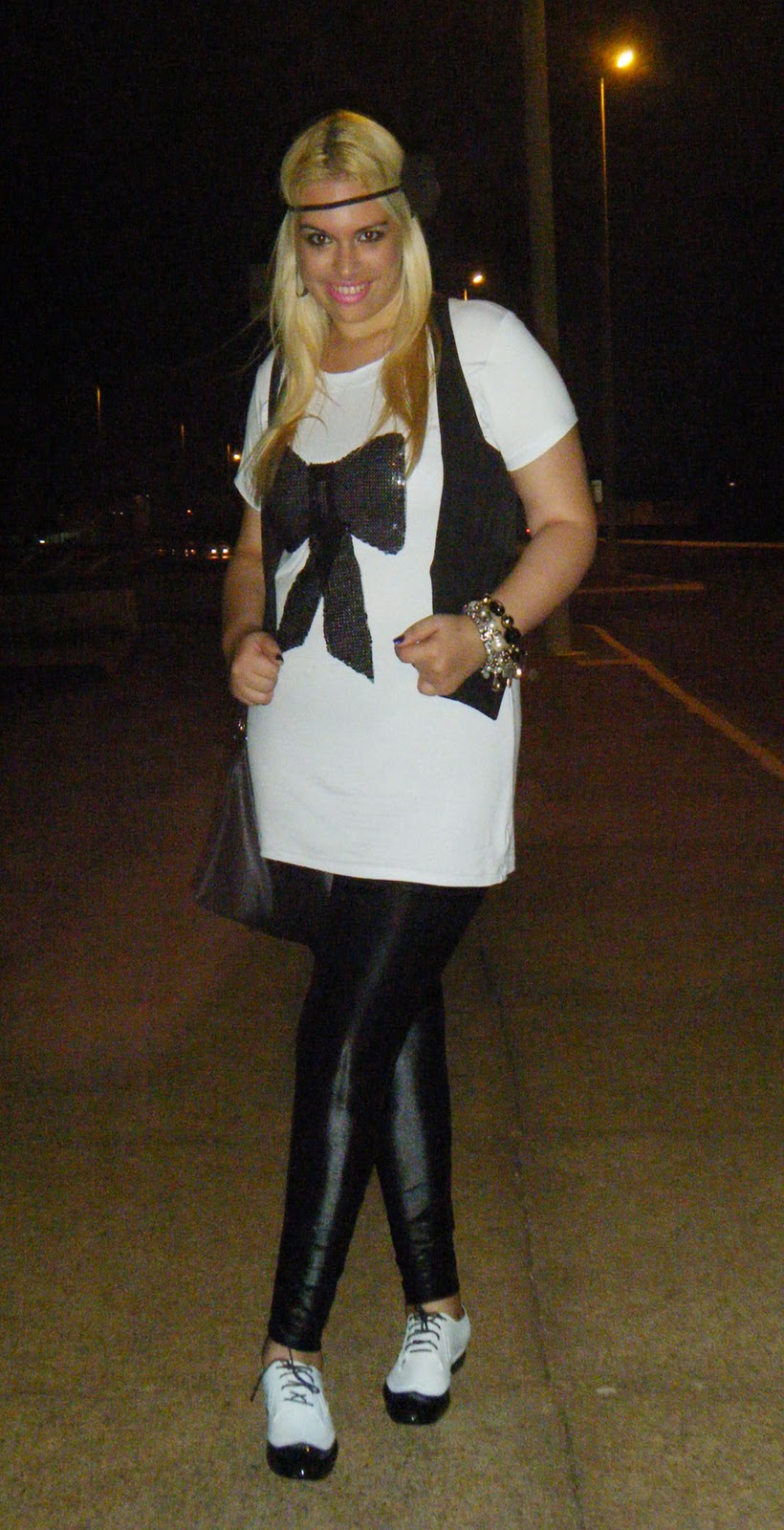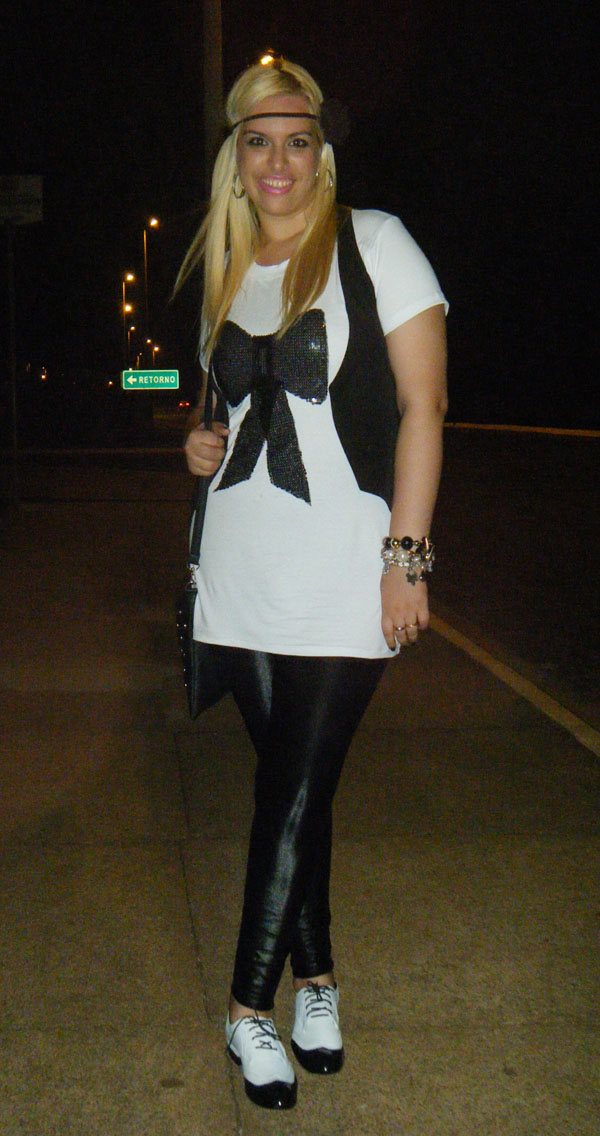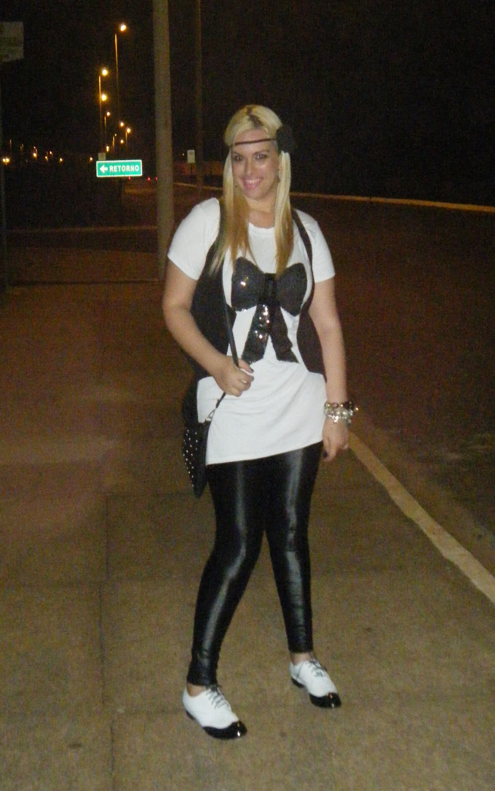 Deixando a gula de lado, o look é o que importa, há!! A joy era uma das melissas que eu queria muito, mas nunca conseguia comprar(Alôo indie,glam flocada e planetrix), mas graças ao twitter ( @lilapink, me segue!!) consegui!! A melissa divulgou via twitter que iam entrar alguns modelos na loja, fiz plantão e arrematei a minha, em pouco tempo esgotou toda grade, serio!!! Já faz um tempinho que ela chegou e ainda não tinha montado um look legal, sempre imagino um look com referencias Boysh( o que acham de um post com esse estilo???), mas com o toque feminino, e foi assim que montei esse look, calça preta ,camisa branca e colete. Ao invés de calça normal usei wet legging e a camiseta com uma estampa de laço em paete, o headband deu o toque final e voila um look super feminino mas com referencias no guarda roupa dos meninos!!!