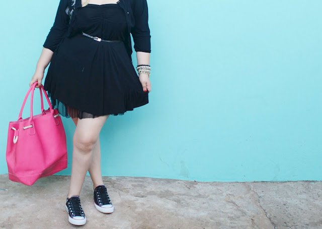 Hoje eu estava afim de preto!! Catei essa bata que nunca uso, joguei uma sainha de tule por baixo e all star pra encarar um dia cheio.