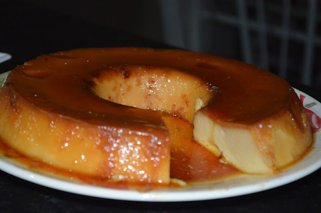 bater todos os ingredientes no liquidificador, derreter o açúcar até formar uma calda, despeje o conteúdo do liquidificador na forma com calda e cozinhe em banho maria por 1h e 40 mim ou até que fique firme e não suje o palito.