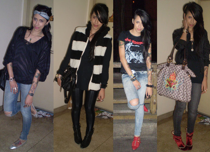 Eu sou romântica na maioria das vezes. Sempre digo que a forma que eu me visto é um contraponto à minha personalidade que é bem forte. Mas, também adoro vestir-me inspirando-me em algumas referências do rock.