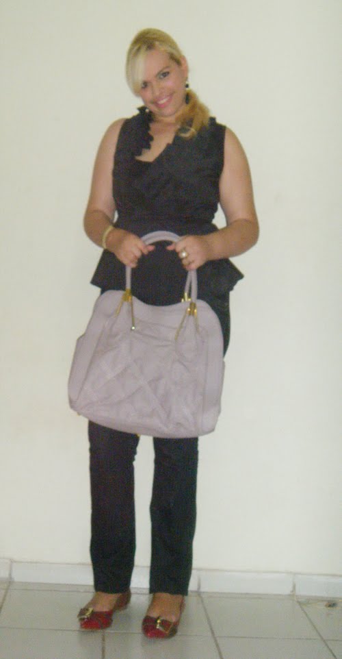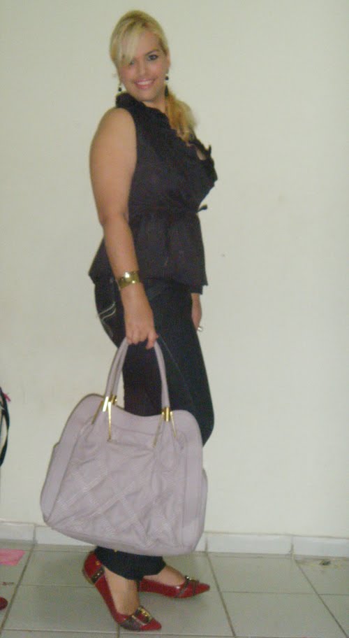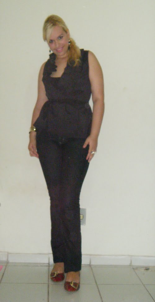 Na foto não da pra ver bem mais, o decote da blusa tem um super babado lindooo, mas a inteligente aqui não fotografou…
