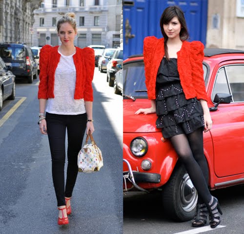 Um casaqueto de ombros estruturados e todo trabalhado foi a escolha de 2 das bogueiras mais estilosas das blogosfera.