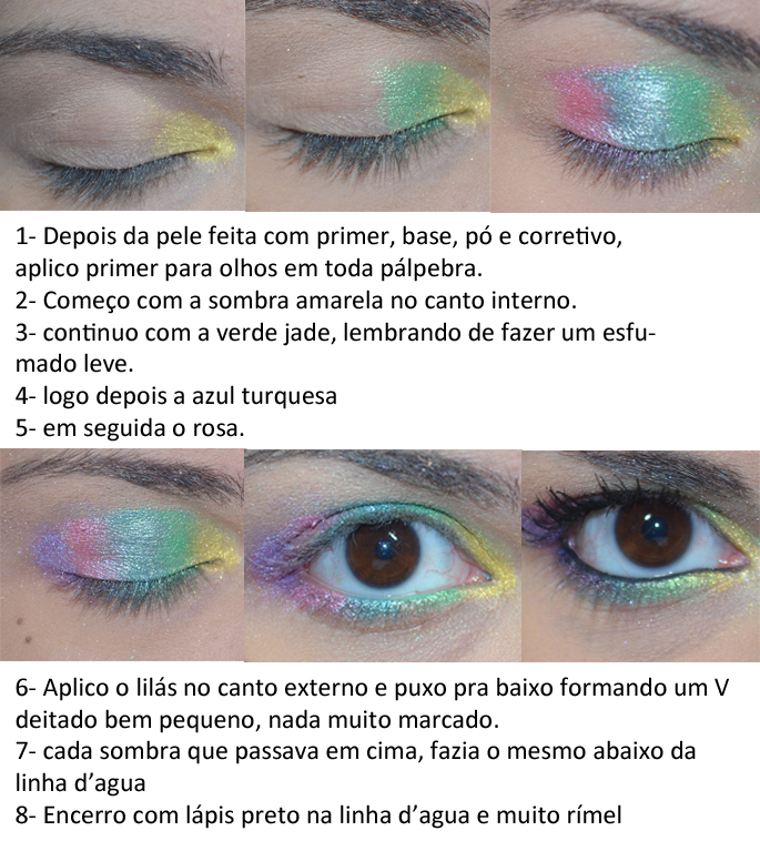 Essa é uma make não muito comum, ha quem goste e quem odeie, quem não gostar pode trocar por cores claras, tipo verde pastel, azul bebe e lilás.