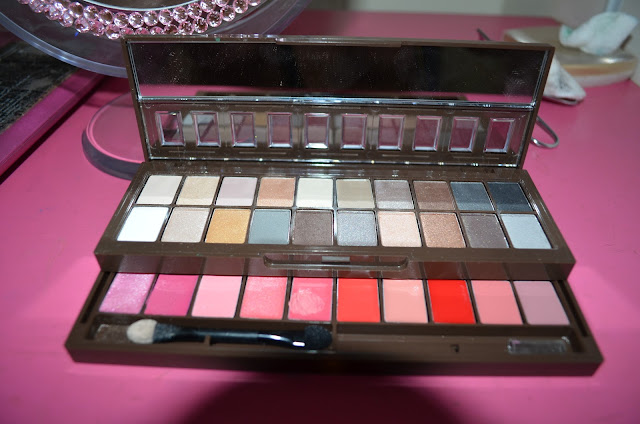 Ela é em formato de livro e é composta por 24 sombras a maioria Shimmer, 04 aplicadores, 04 bronzers, 02 blushs e 02 Lipgloss um dos bronzers é lembra o leopard da Nyx e pink leopard da too faced.