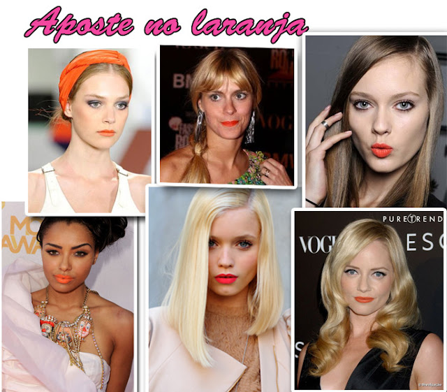 Esse é realmente o verão das cores, sejam elas nas roupas, nos acessórios e até mesmo na maquiagem. Nada de nude e rosinhas na hora de escolher o batom, a pedida da vez são cores fortes e vibrantes, como o laranja. Ele pode vir em neon, cremoso, matte, cintilante ou até no gloss mais discreto, o importante é escolher a tom que melhor combina com sua pele.