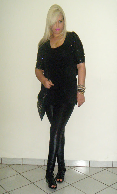 E no show do JQuest não foi diferente, mais ai que me deu a louka e vesti preto total, com um ix de texturas bem ousado, paetes e lamê. Muito brilho? Não achei por ser tudo de uma cor só, até que ficou bem harmonico!! Alias esse é truque bem legal pra quem quer usar um look monocrmatico, aposte em texturas diferentes, para um efeito mais moderno!