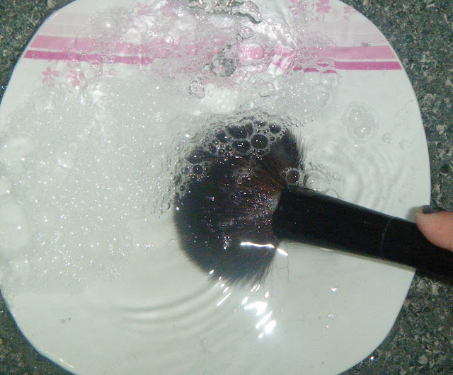 A Vivian que assim como eu é colaboradora lá no Blog da Andreza, me mandou a versão de 60ml para testar. Como blogueira/Maquiadora curiosa que sou, resolvi botar o danado pra jogo e testei logo em um pincel kabuki com base, quem tem sabe que é um dos mais chatinhos de lavar.