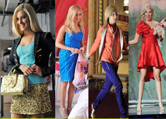 Eu confesso que assisti mesmo já na esperança de ver seus figurinos bem perua cor de rosa e nesses eu não me decepcionei, ela usou muitos , muitos look e todos super fofos. Eu claro corri atrás e consegui achar boa parte deles. Uma mistura de rosa, muito branco, amarelo, azul e tons pastel. Tudo arrematado com muito prata e dourado, além de todas a peças serem salpicadas de strass para dar aquele ar Sharpay hehehe, eu dispenso os strass, mas acho que o resto é bem usável!!!