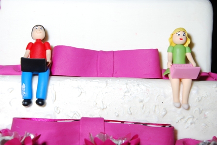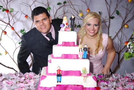 O Bolo, não foi exatamente o que eu queria, mais ficou legal o toque claro são os bonecos que contavam a nossa historia! O começo, o namoro e o melhor o noivo em desespero heheh, minha mãe quem escolheu e disse que era o boneco perfeito eu cheia de compras e o Cleber desesperado hahahaha!!!