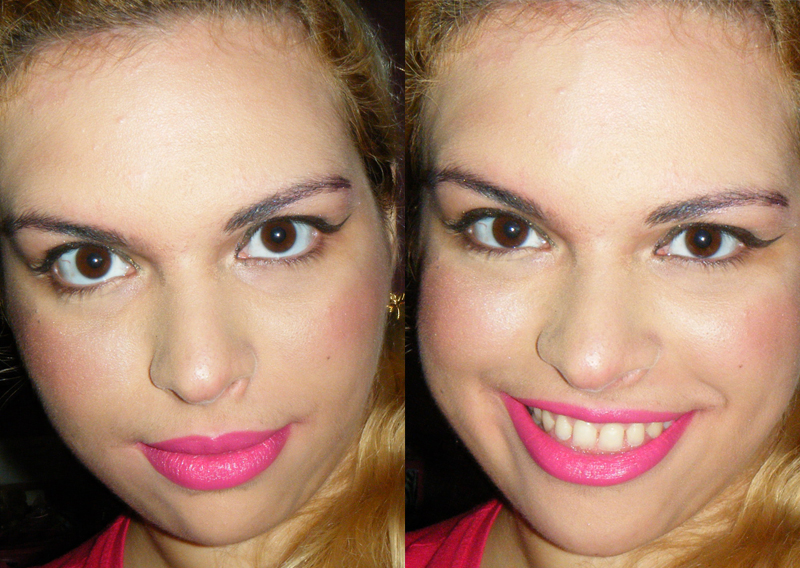 A sombra preta é bem pigmentada e pega bem, mesmo sem primer. Já a rosinha é muito fraquinha e não tem cro de nada, mais pra mim, foi otimo porque caiu super bem na minha pele, pra iluminar abaixo da sobrancelha e esfumar as sombras mais escuras ( já que é umas das coisas que voces reclamam, da sombra muito branca, nessa parte). O blush é bem clarinho, serve mais como iluminador e acho que funciona super bem junto com o pó, claro bem de leve, pra não ficar muito brilhosa!