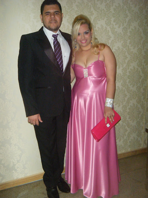 Sábado foi o casamento do meu irmão, e , eu fui madrinha junto com meu amor. A festa foi em Goiania e a gente estava na duvida se ia fazer frio ou não, então na hora de escolher o tecido optei por um bem grosso, já precavendo o frio que poderia vir, o modelo escolhi um simples, criei vários, mas fiquei com medo de não me cair bem, e ai podia ser tarde já que estava uma correria minha vida( ainda está), um vestido com corte viés e silhueta império, o busto imitava um laço, com uma malha de strass aplicada no meio!!! Simples, mas que pelo visto agradou, como viajei a semana toda meus pés estavam super inchados e nenhuma sandália ficava legal, dai vem a luta pra encontrar um sapato que ficasse bem e que eu pudesse aguentar a nigth, o único jeito foi um pep toe rosa, ou seja acabei montando um look 90´s, bem monocromatico, carteira pink, vestido fucsia e pep toe com mescla das 2 cores. Já sei que muita gente vai criticar e outras que como eu amam rosa vão adorar, mas no fim adorei o look, e recebi muitos elogios!!