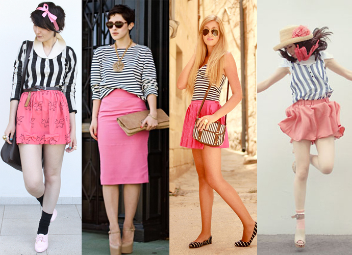 Continuando a nossa saga para montar looks combinando rosa com outras cores e estampas, hoje é dia de mostrar combinações com Listras!