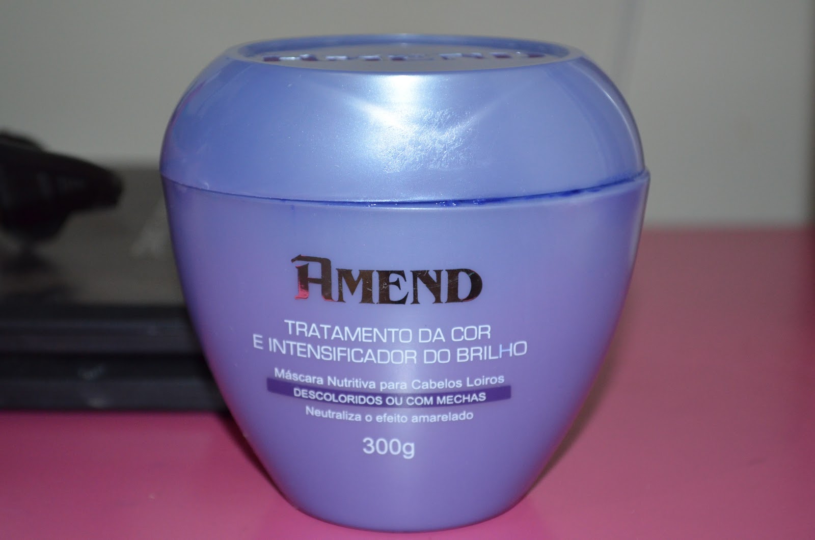 Sobre um produto :Amend Tratamento da Cor e Intensificador do Brilhocom pigmentos violeta e extrato de camomila. Nutre e hidrata os cabelos descoloridos ou com mechas e neutraliza o tom amarelado, iluminando o loiro e proporcionando efeito natural. A Amend recomenda aplicar a máscara, após lavar os cabelos, no comprimento dos fios e pontas e deixar agir por 10 minutos e enxaguar.
