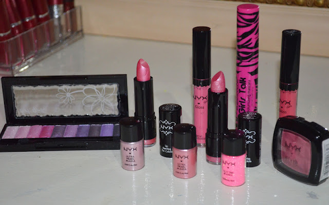 São 3 batons round Nyx, 1 batom matte Nyx, 1 mascara Nyx, 1 gloss Nyx, 1 jumbo Nyx e 1 paleta de 10 cores L.A.