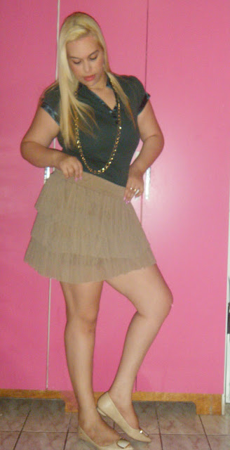 Quem me conhece bem sabe que é muito difícil me ver usando marron, verde musgo, caramelo ou qualquer um desses tons que são bem característicos do estio militar, but quando se fala em moda a gente sempre paga a língua, quantas vezes eu já disse que odeio tal coisa e logo aparece uma releitura e eu me rendo, foi assim com as ombreiras e muitas outras trends que já foram e ainda continuam!! Com o estilo militar foi o mesmo eu sempre chamei esse marronzinho nude de cor de nada, comprei um tule lindo e coloquei a estilista que habita em mim pra jogo e olha que saia fofa que surgiu, lembrei dessa blusa verde musgo esquecida no armário e voila um look com inspirações militar, mas nada muito caricato, o que achei mais legal é que mesmo usando inspirações de um estilo diferente do meu, continuou a minha cara,por causa da saia de camadas e a blusinha com manguinhas bufantes!!!