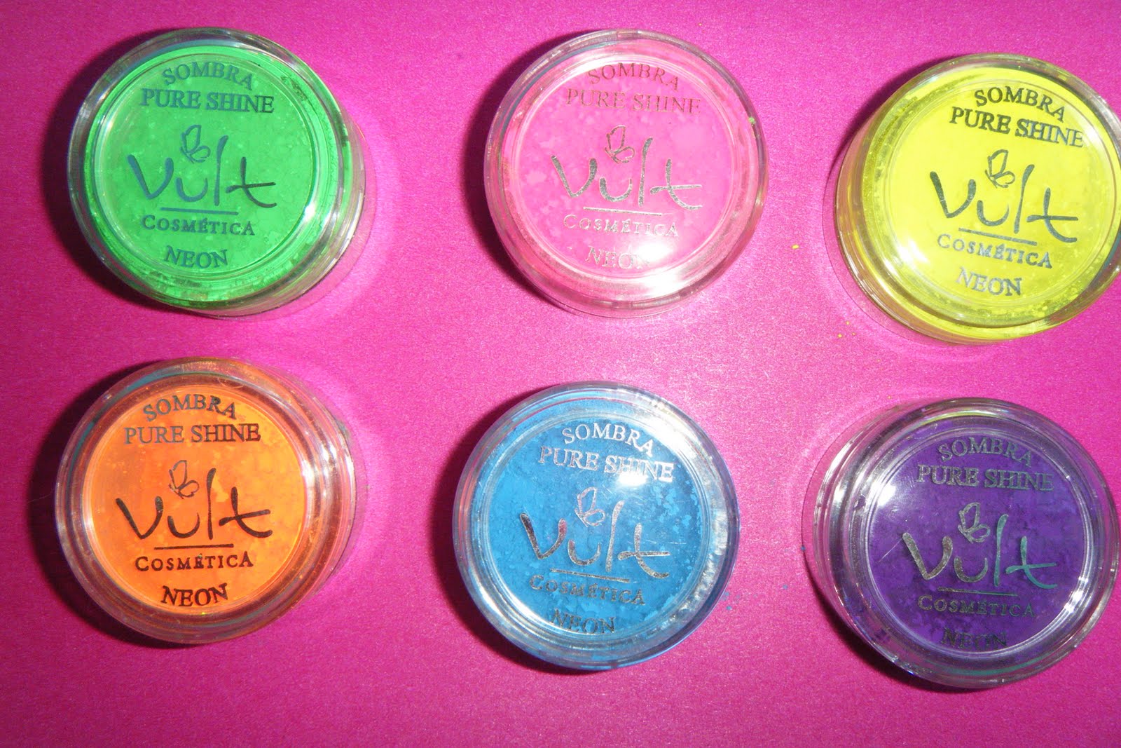 Já faz uns 2 meses que comprei essas sombras, mais ainda não tinha resenhado, apesar do auê dos neons ter passado eu queria muito algumas ores pra chamar de minha e como não encontrei as famosinhas da Koloss arrisquei nas da Vult!! Já vou dizendo que foi um parto fotografar essas cores, o que fez com eu demorasse ainda mais pra postar!! Mais vamos ao que interessa, sem primer ou com pincel seco só se salva o roxo, as outras são muito fraquinhas e por ser de pó solto não fixa na pele, mais ai com pincel ou primer, a magica acontece e elas ficam mega coloridas!!! Pra quem curte um make ala Marimoon, o pincel molhado é perfeito! Já quem quer usa-la esfumada aconselho um bom primer!